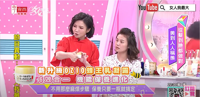 #台灣美妝節目翹楚《女人我最大》多次推薦的「OZIO蜂王乳凝露」