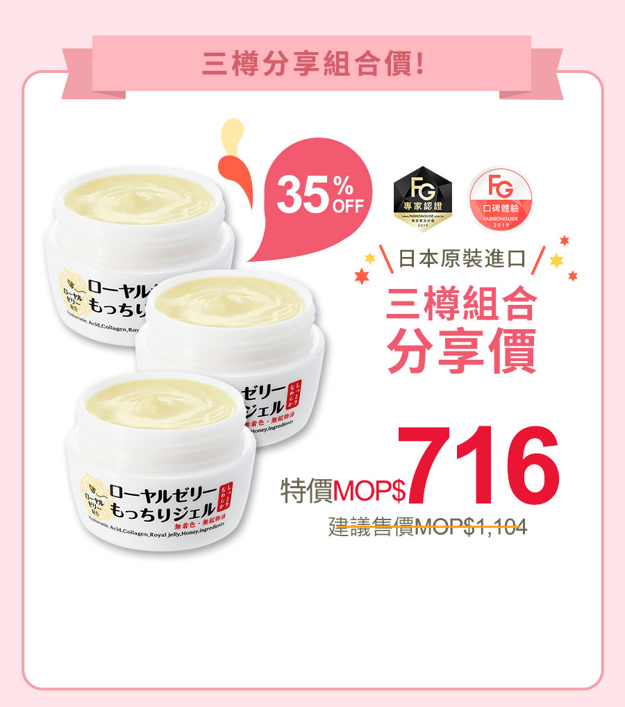 👉三大成分「蜂王乳 X 玻尿酸 X 膠原蛋白」一抹打造Q彈滋潤美肌