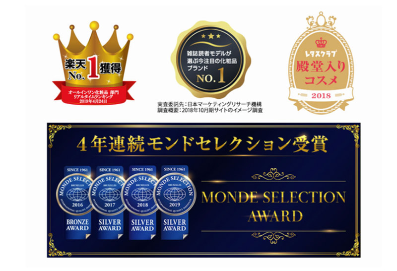 「OZIO蜂王乳凝露」連續5年獲得國際品質評鑑大賞的肯定,並榮獲日本大型網路商店「樂天」All in one保養品部門的銷售No.1! 此外,還陸續獲得「雜誌讀者喜愛的保養品品牌」No.1、lettuceclub2018名人堂保養品等多項大獎!
