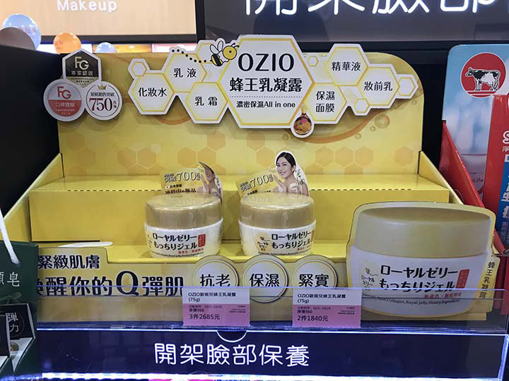 「OZIO蜂王乳凝露」在台灣、香港都於限定店鋪進行銷售,店鋪活動因消費者反應相當熱烈,門市的庫存都一再售罄。